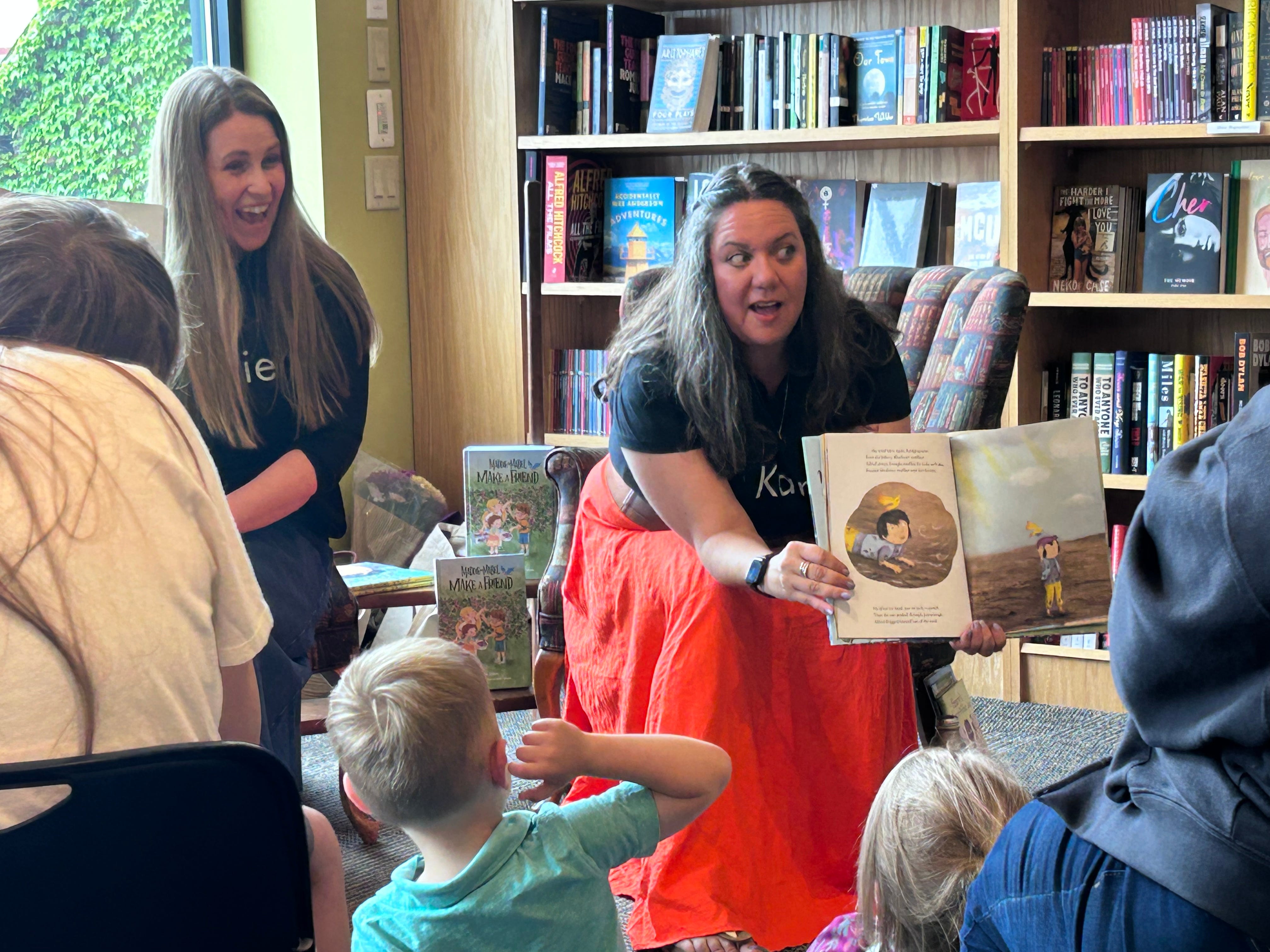 The next stop on our Friendship Tour was my local bookstore, Gibson’s Bookstore. I am so lucky to have such an incredible indie bookstore in my town. This time Carrie and I wore t-shirts so you knew which Kari was what Carrie. As always, Gibson’s was the best!